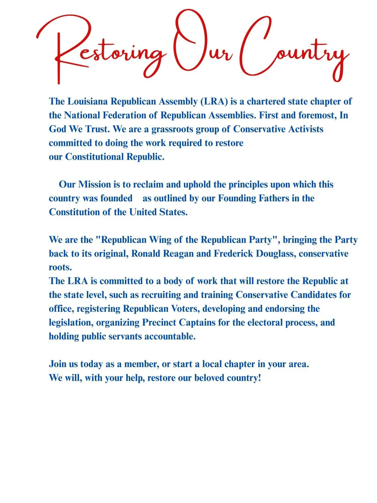We believe in nationalism and that the Government's first concern is the welfare and protection of the American people and their sovereign right to rule themselves without deference to any foreign or international body. We do not believe in trade protectionism but support political leaders who will adopt policies that create fair and competitive trade.